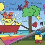 - “Reading Rainbow” | 16′ x 6′ | Acrylic on White Birch panel – Final full center image of the collaborative “LIVE” mural during the Virginia Children’s Book Festival 2018 at Longwood University.