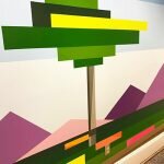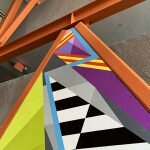 - "Geo #150" | 4'h x 12'w x 2"d | Aerosol on framed plexiglass | A commissioned mural by the U.S. Navy San Diego | U.S. Navel Base San Diego, California | 2023