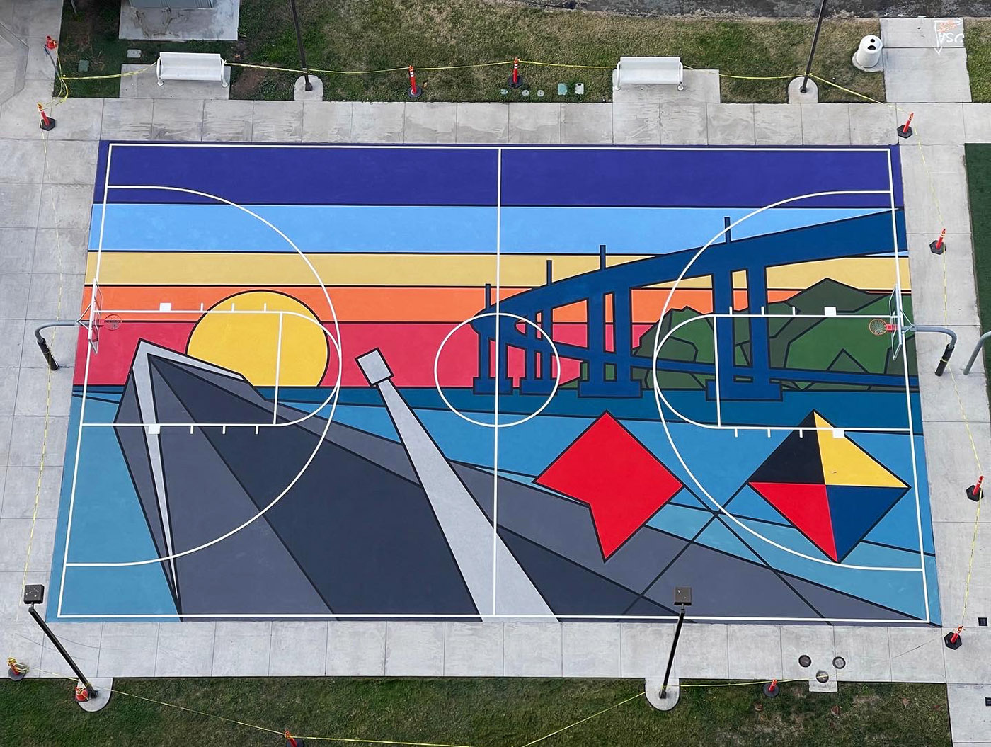 - "Bravo Zulu" | Full Basketball court completed with Project Backboard | Texture paint on concrete | Pacific Beacon | Located at the U.S. Navel Base San Diego, California | 2022