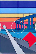 - "Geo #152" | 4'h x 12'w x 2"d | Aerosol on canvas | A commissioned mural by the U.S. Navy San Diego | U.S. Navel Base San Diego, California | 2023.