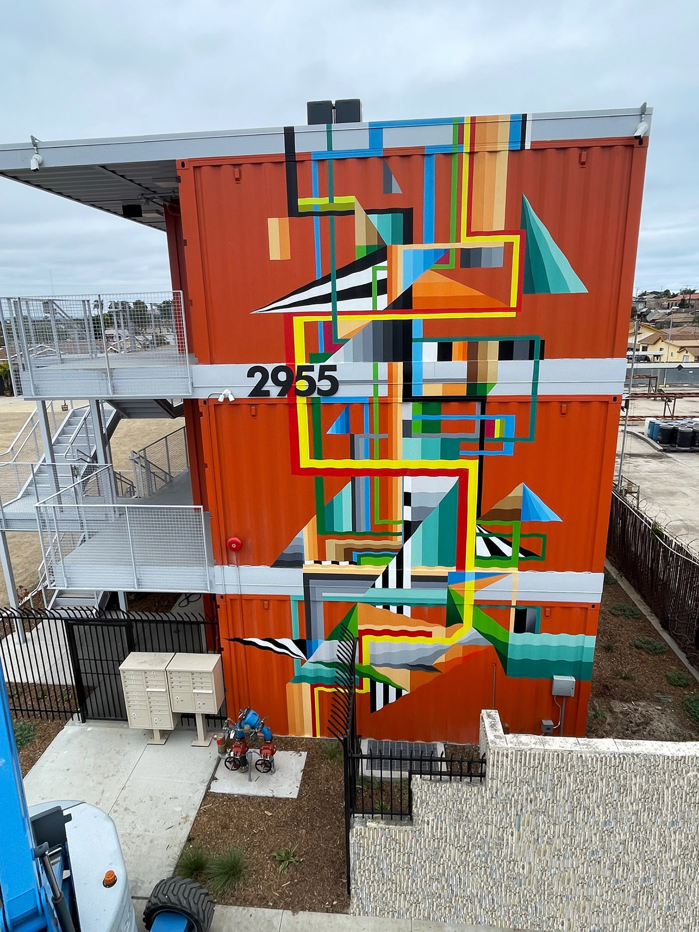 - "The Monarch" | 36'h x 22'w | Aerosol on corrugated metal cargo containers | Located in Logan Heights at 2955 Commercial Street San Diego, California 92113 | 2023
